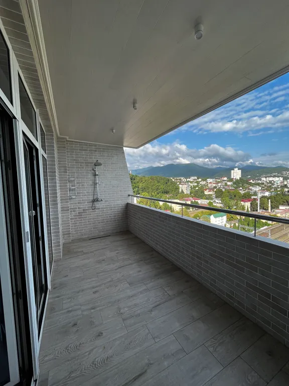 Безопасная терраса с шезлонгами и душем