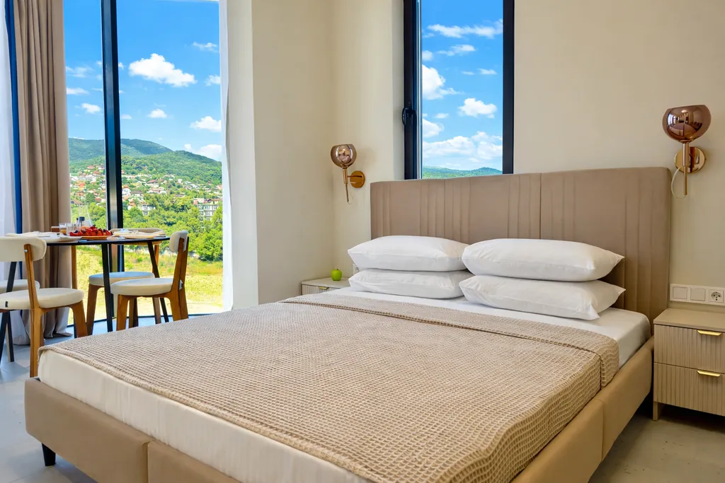 Здесь все создано для комфортного отдыха: панорамный вид на море, звуки волн по утрам, большая территория с бассейном и удобная инфраструктура.