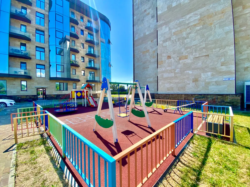 Бассейн с подогревом, бесплатные лежаки, душ, ухоженная территория с детской площадкой.