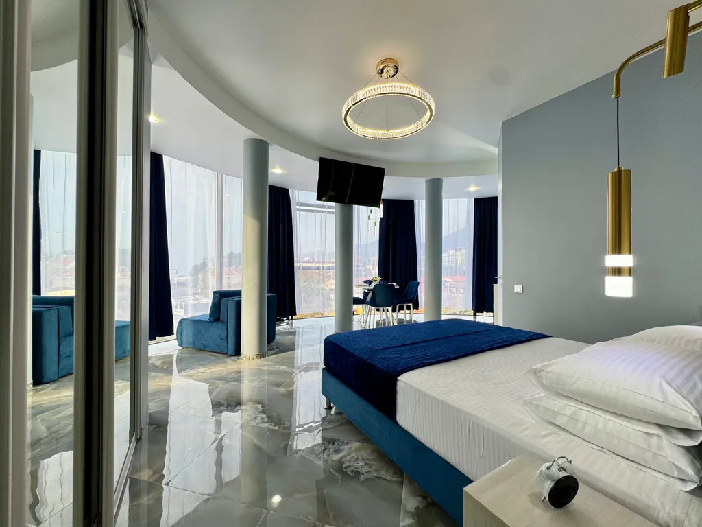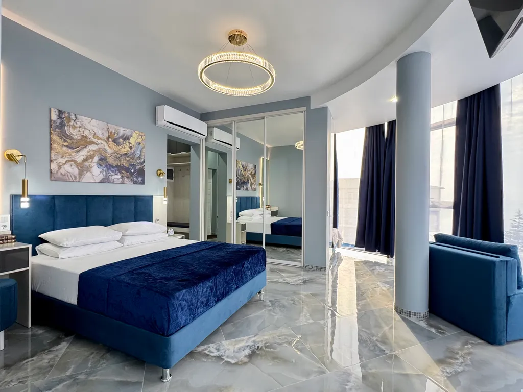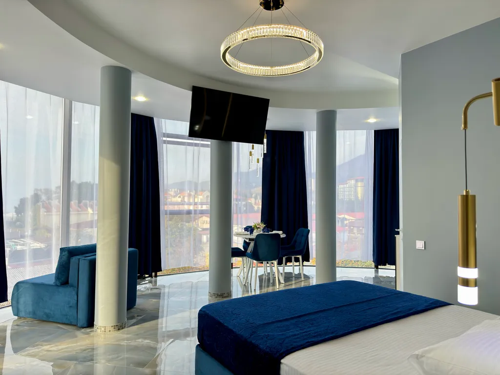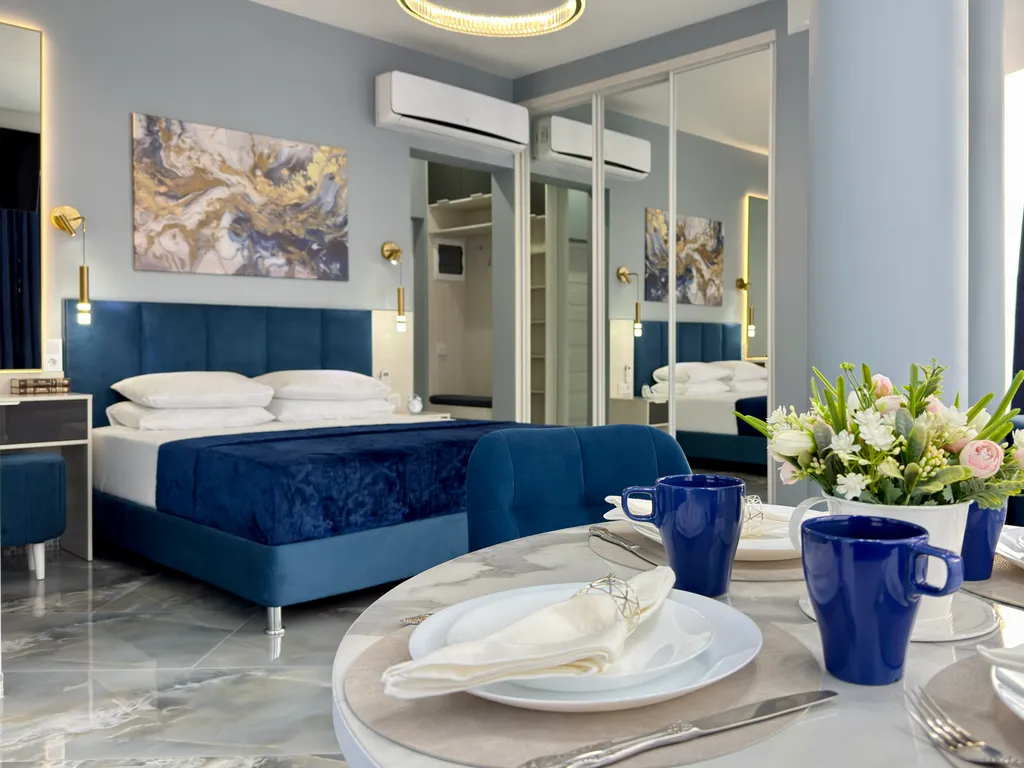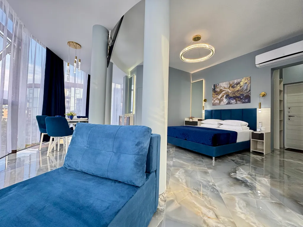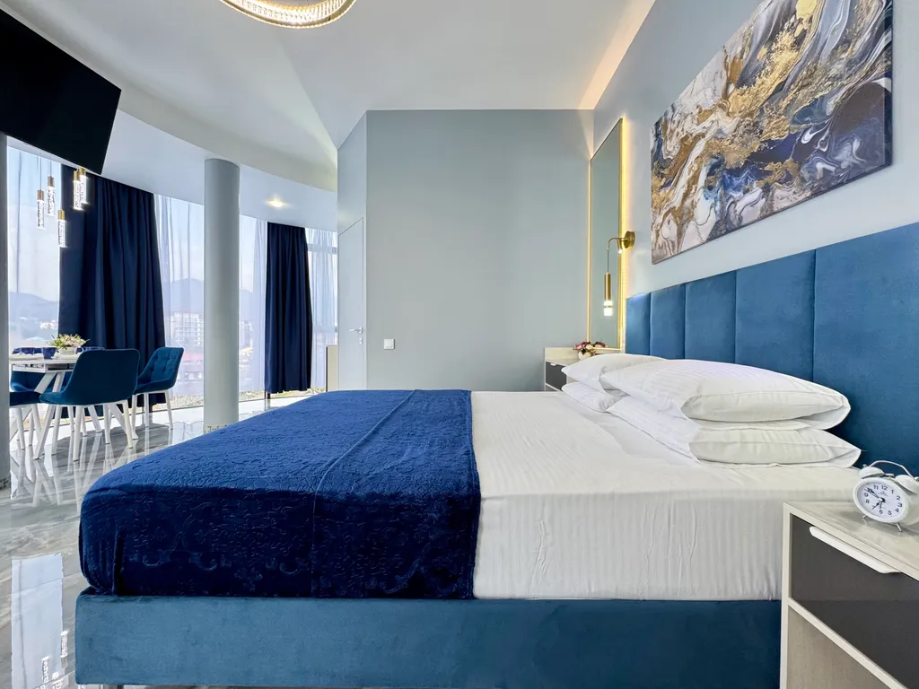 - Просторная студия с зоной отдыха, где можно наслаждаться свежим морским воздухом.