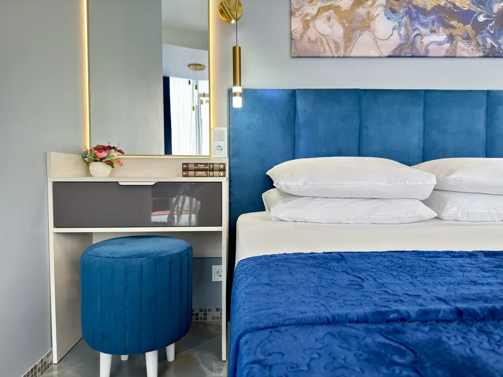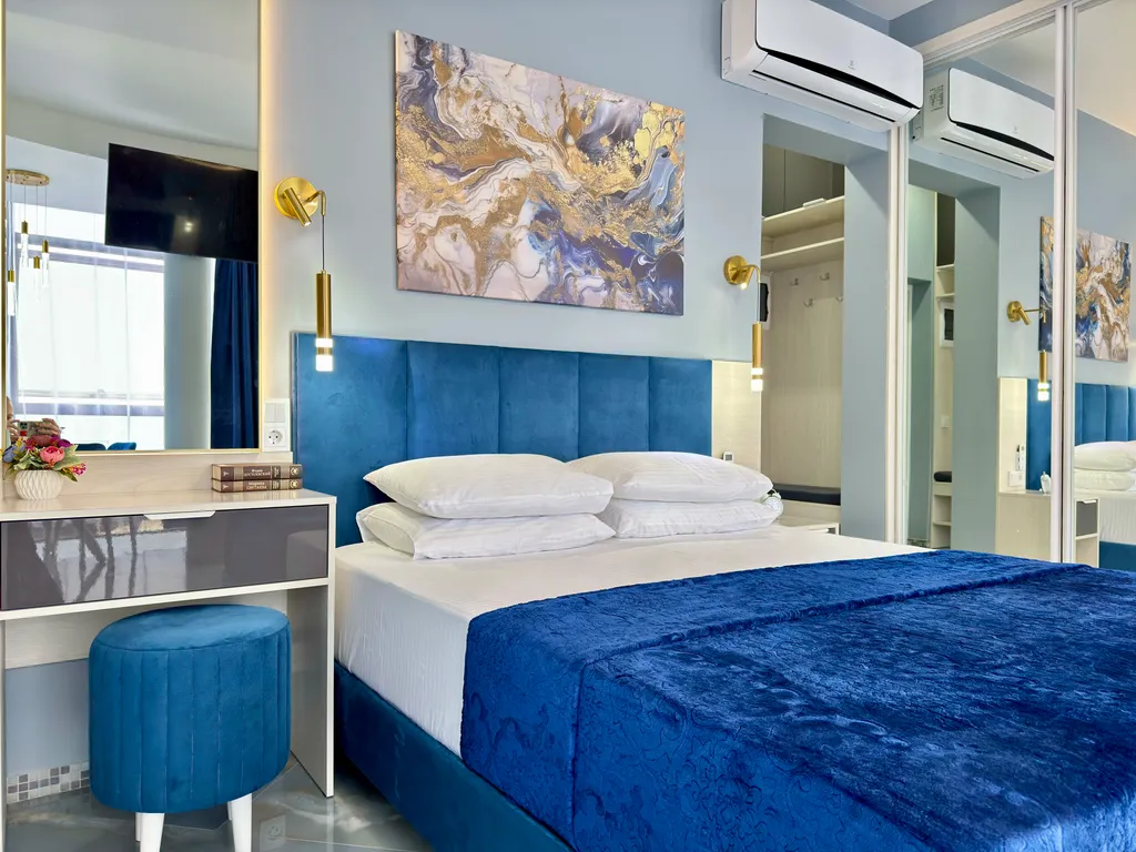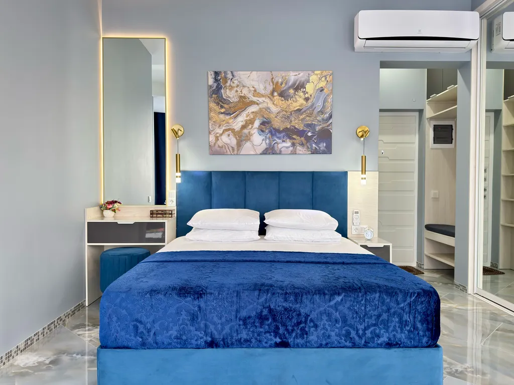 - Вместимость апартамента до 4 Гостей: комфортная кровать King-size (180×200), односпальная кровать (80*190), кресло-кровать (70*190).