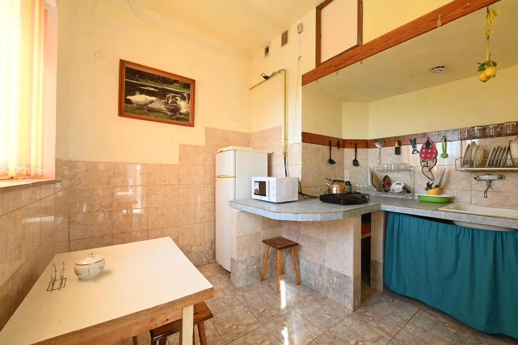 Напротив друг друга находятся 2 спальни. На этаже своя кухня (газовая плита, вся необходимая утварь, холодильник), душ и туалет. Всё индивидуально, без посторонних.