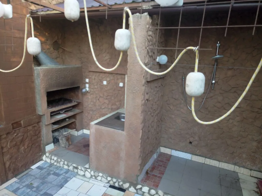 Прямо за углом дома находится полностью оборудованная, просторная беседка для отдыха с мангалом, мойкой, столом и подсветкой для вечерних посиделок и шашлыка.