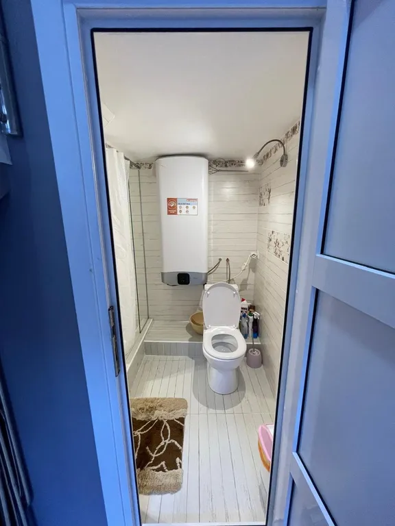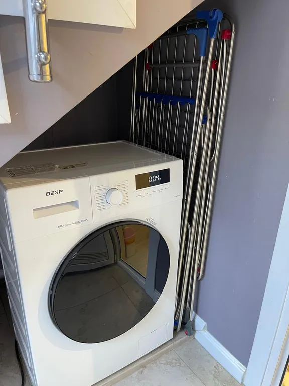 Совмещенный санузел. Рядом установлена стиральная машинка.