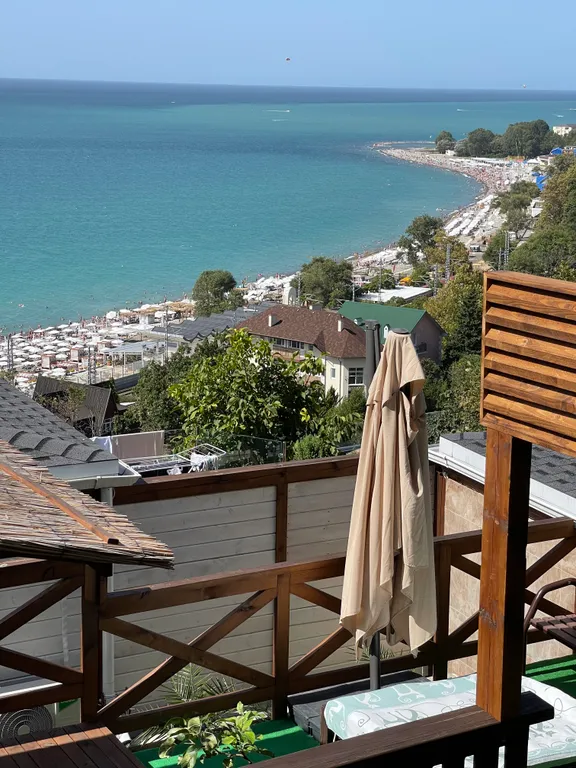 Спуск к морю по ступенькам - 70 метров и переход через федеральную трассу, занимает 7- 10 минут спокойным шагом. Расстояние до моря по карте 300 метров. Вы проходите мимо магазинов, столовых и кафе.