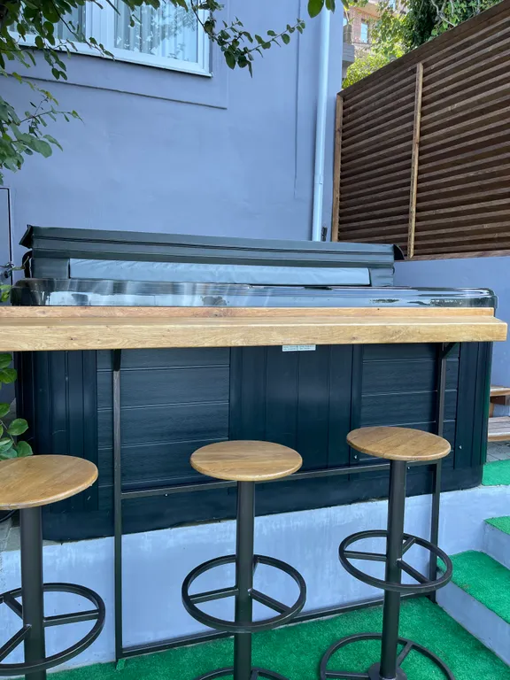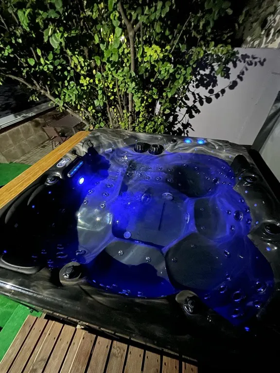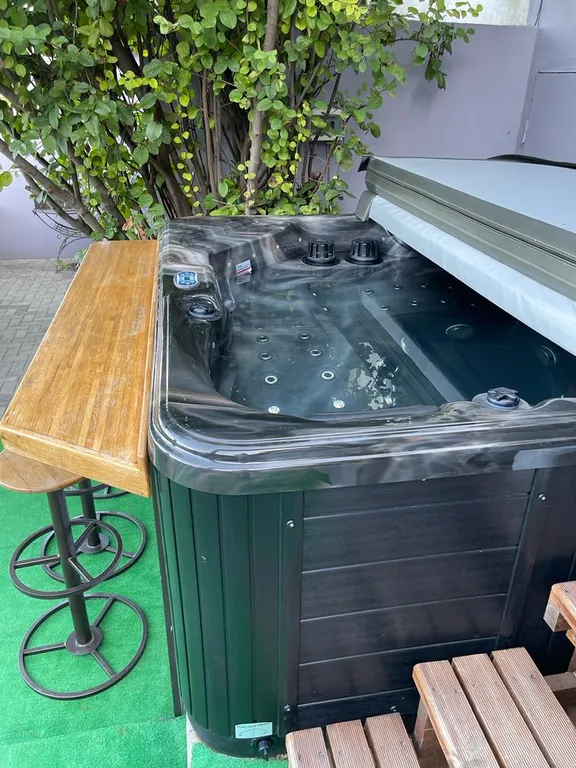 На территории установлен большой, 5-местный подогреваемый спа-бассейн ( джакузи) с функцией гидромассажа.