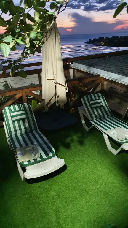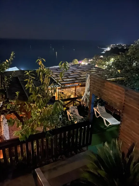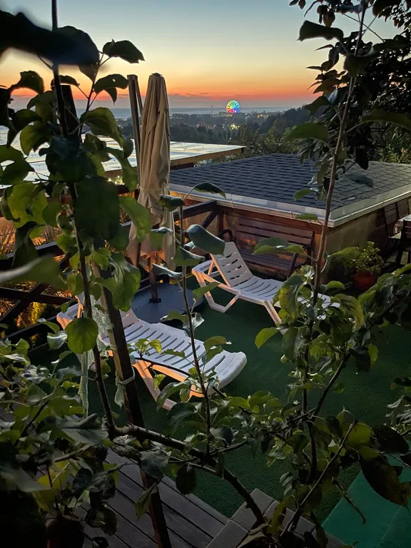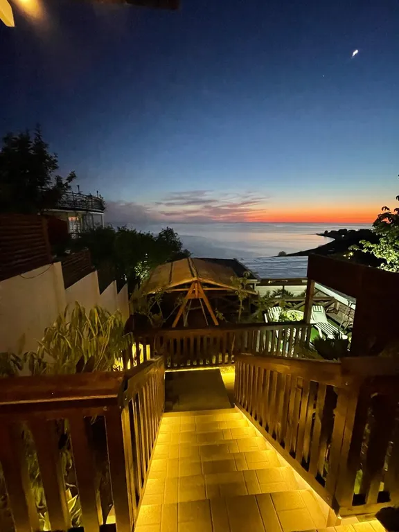 Украшением этого объекта является 5-местный спа-бассейн (джакузи), установленный под открытым небом, с панорамным видом на пляж и море! Вечерами, купаясь в нем, можно наблюдать звёздное небо.