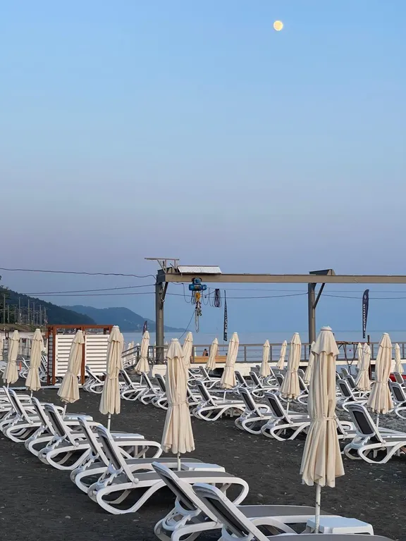 Пляжная полоса широкая. В основном галька, в зоне лежаков песочек.